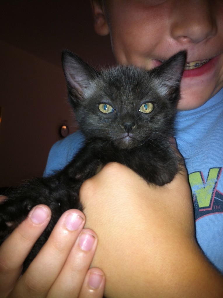 Jay brought home a kitten from the barn. He’s currently named “Baby Kitty”